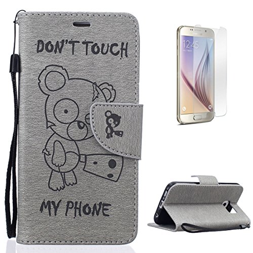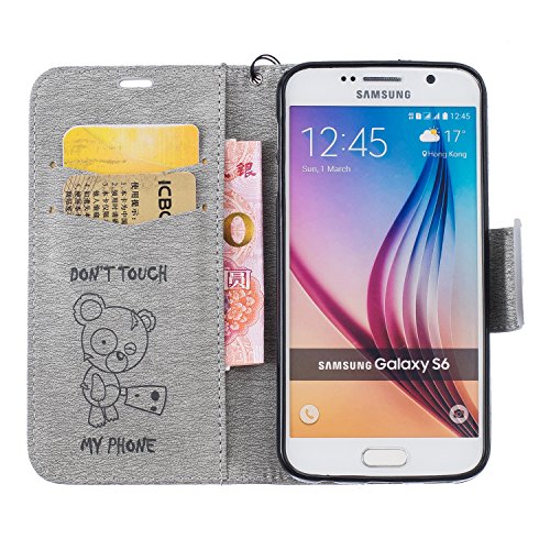 CaseHome for Samsung Galaxy S6 Sbalzato Pelle Flip Caso Portafoglio Magnetico Stile del LibroAntiurto Fondina Full Body Protettivo PU Pelle Caso Copertina Pelle Conchiglia-Grigio