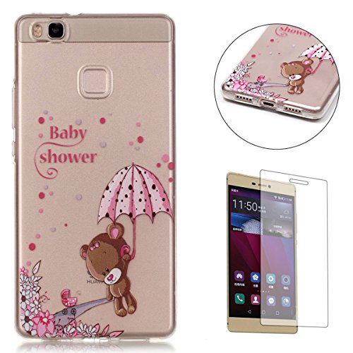 CaseHome gel di silicone HUAWEI P9 Lite Caso [con la protezione dello schermo libero] Cristallo libera Ultra sottile Sottile Fit Shock Proof morbido Durevole Gomma Paraurti Graffiare Resistente protettivo alta qualità TPU Caso Copertina Pelle Conchiglia per HUAWEI P9 Lite con bello Colourful Modello Design-Orso Carino