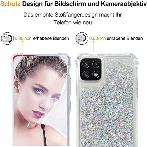 [Custodia in Silicone di Fascia Alta]: La custodia per cellulare è realizzata in silicone TPU trasparente di alta qualità. La sua particolarità è il retro dei microglitter e stelline, ad ogni movimento i cuoricini brillanti e la polvere di stelle nuotano sul tuo dispositivo, rendi il tuo telefono unico, lussuoso, bello. La custodia per Samsung Galaxy A22 5G del telefono non è solo molto user-friendly ma anche antiscivolo, quindi puoi facilmente installare e rimuovere la custodia.