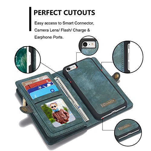 Caseme - Custodia a portafoglio in pelle per Samsung Galaxy Note 8, multifunzionale, con chiusura magnetica e cerniera, Pelle, Blue, iPhone 7/iPhone 8