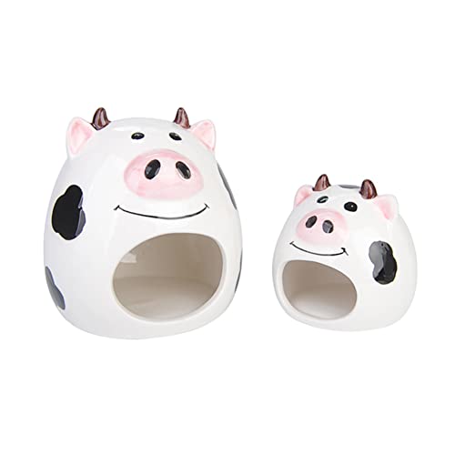 Casetta per criceti, in ceramica, estiva, a forma di mucca per animali domestici, adatta per criceti, topi da corsa, topi d'India, regalo per animali domestici