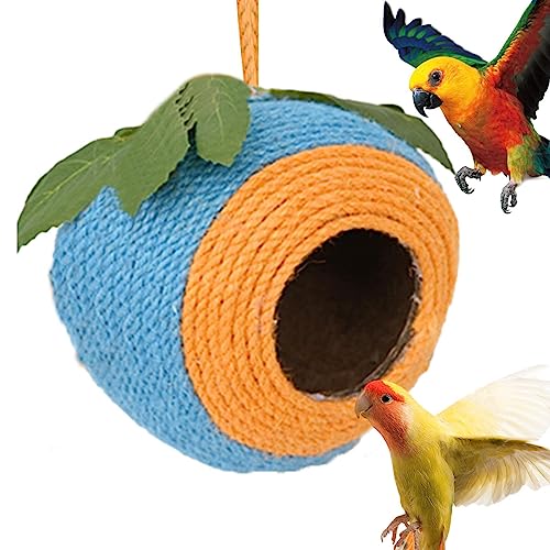 Casetta per uccellini in cocco - Pappagallo Guscio di Cocco Casetta per Parrocchetto | Capanna per uccelli in guscio di noce di cocco naturale, nido di uccelli intrecciato a mano per Pekoluta