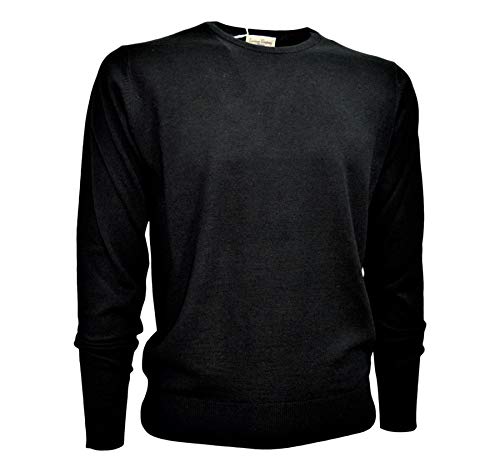 CASHMERE COMPANY MAGLIA UOMO GIROCOLLO NERO 99 MADE ITALY CASHMERE LANA E SETA Taglia 56