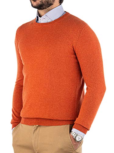 Cashmere Zone Maglione Uomo Girocollo 5% Cashmere 25% Lana 40% Viscosa 30% Fibra Poliamidica Made in Italy Manica Lunga (L, Arancione)