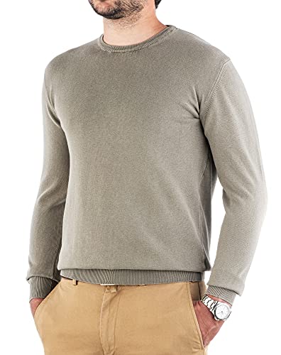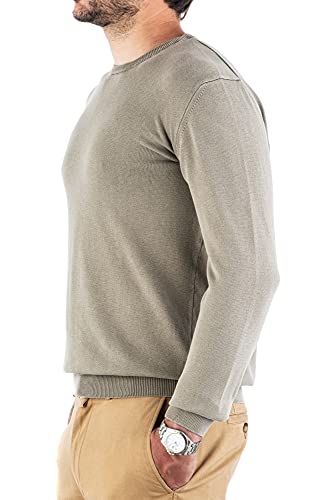 Cashmere Zone Maglione Uomo Girocollo in Puro Cotone 100% Pullover a Manica Lunga Soffice e Morbido (Grigio Militare, Numeric_54)
