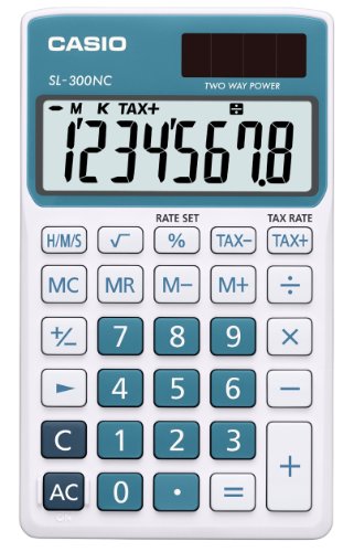 Casio SL-300NC-BU-S-EH Calcolatrice Tascabile, Blu e Bianco