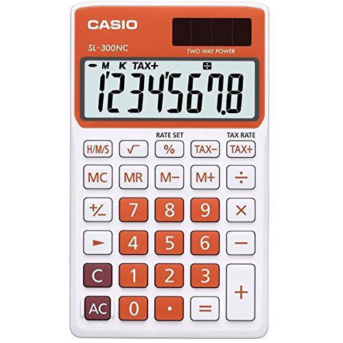 Casio SL-300NC-RG Calcolatrice Tascabile, Display a 8 Cifre, Bianco/Arancione