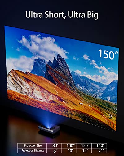 CASIRIS A6 Proiettore 4K, Ottica Ultra Corta Proiettore Laser Videoproiettore 2200 ANSI Lumen con Android TV, Dolby Audio, DTS, Proiettore 150 Pollici in UHD