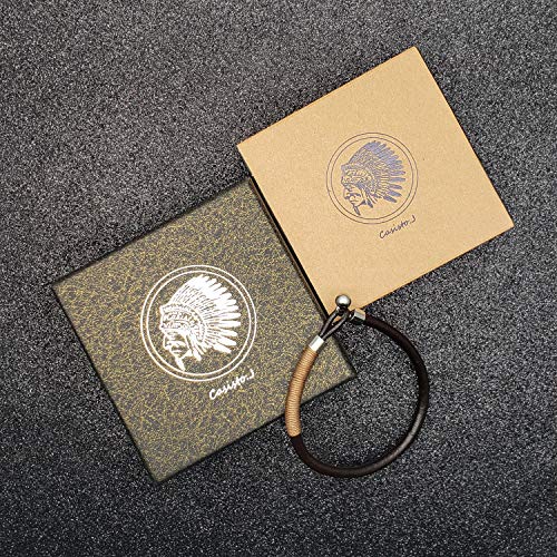 Casisto.J Bracciale in Pelle da Uomo Bracciale in Acciaio Inossidabile con Cinturino in Nylon Marrone Corda (19)