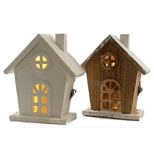 Casita madera nevada con luz