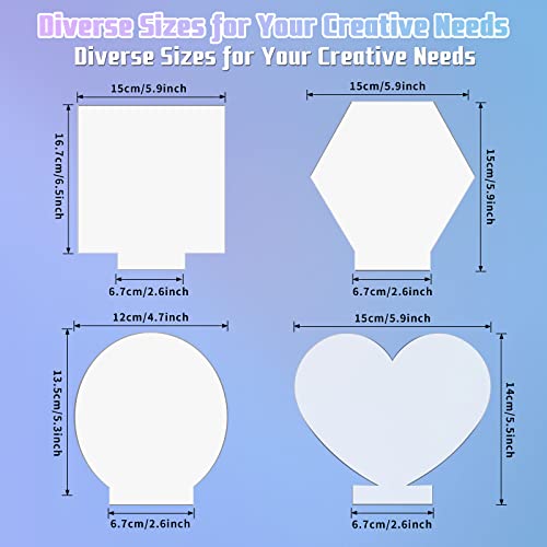 【SQUISITO SET DI FOGLI ACRILICI】Fogli acrilici per base leggera include 4 fogli rotondi, 4 fogli quadrati, 4 fogli esagonali e 4 fogli di fogli acrilici trasparenti a forma di cuore. C'è una pellicola protettiva sulla superficie. Prima di utilizzare il foglio acrilico trasparente, staccare la pellicola protettiva superficiale su entrambi i lati per ottenere un foglio acrilico pulito e trasparente, comodo per scolpire forme diverse e decorare il desktop.