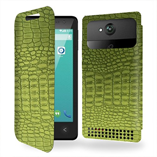 Caso INNOVATIVO Carrefour Poss Smart 4.5 4G coccodrillo Vert Collection coccodrillo con interno di archiviazione sportello della scheda - Custodia protettiva Carrefour Poss Smart 4.5 4G con attacco adesivo riposizionabile 3M - Frizione Caso Industry