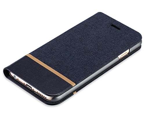 Caso di vibrazione vera pelle ultra-sottile Torras per iPhone 6S / 6 4.7 "denim ottica + pelle vera
