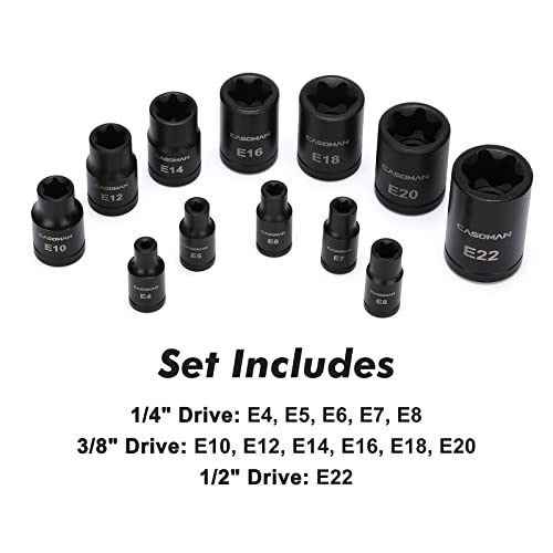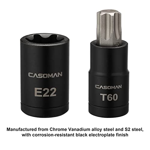 CASOMAN 25 Piece Torx Bit Socket and Female External Socket Set, 13 Star Socket Bits (T8- T60)& 12 Female E-Torx Sockets (E4-E22)
