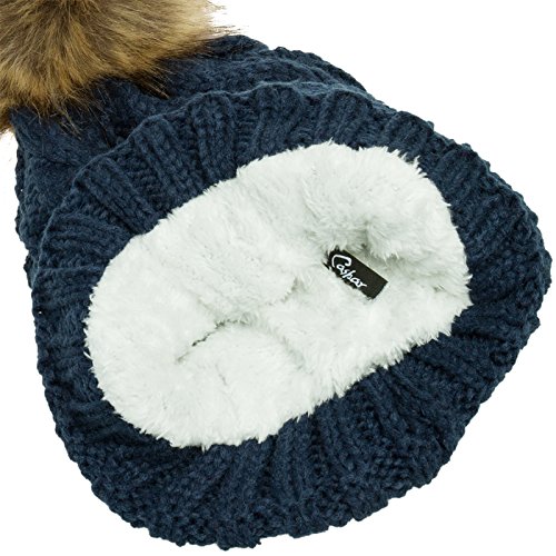 Berretto invernale con motivo a trecce e pon pon di pelliccia sintetica