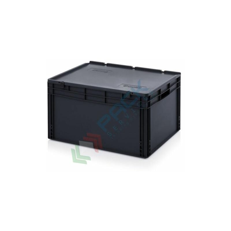 CASSETTA IN PLASTICA ANTISTATICA E CONDUTTIVA Contenitore in plastica, conduttivo e antistatico, capacità 172 Lt, Mis. esterne 800 L x 600 P x 440 H mm, Mis. interne 760 L x 560 P x 405 H mm. Cassetta in plastica sovrapponibile, norma Europa, con coperchio integrato. La cassa in plastica, il coperchio e la cerniera sono realizzati in materiale sintetico conduttivo, quindi adatti per l'immagazzinaggio e il trasporto in sicurezza di merce elettronica. Cassetta di plastica impilabile anche con coperchio, robusta e fornita in tutti i formati Euro attuali. Il coperchio è incluso e fornisce maggiore protezione al contenuto. Base e pareti chiuse, maniglie chiuse. Cassetta conduttiva e antistatica in polipropilene (PP), NON idonea al contatto alimentare. Con l'utilizzo di contenitori antistatici si evitano cariche elettrostatiche;