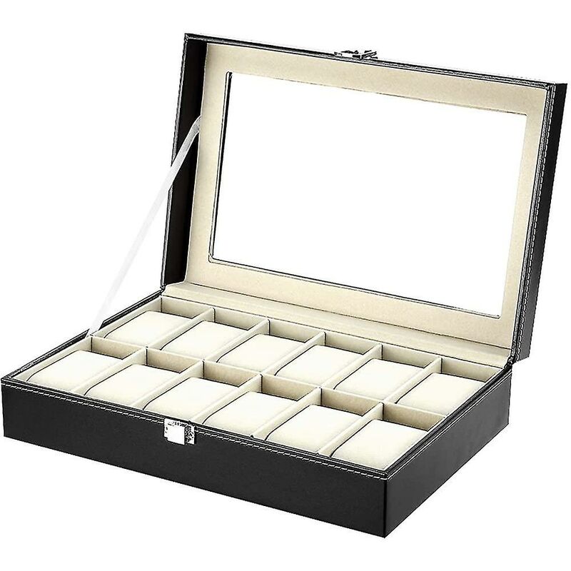DISPLAY u0026 CONSERVAZIONE: Un portagioielli per orologi è un oggetto meraviglioso che consente a un gentiluomo o una signora di mostrare la sua intera collezione di cronometri, protegge con gusto, conserva e organizza 12 orologi, si adatta perfettamente alle tue esigenze.CONVENIENTE DA PORTARE OVUNQUE: le dimensioni compatte e portatili ti consentono di portare la scatola dell'orologio da polso ovunque tu voglia senza preoccuparti di occupare spazio. AMPIA APPLICAZIONE: questa scatola porta orologi è perfetta per l'uso personale (uomini, donne, donne) e per l'uso in i tuoi orologi dalla polvere. Un grande regalo per qualsiasi celebrazione o festival come laurea, Natale, compleanno, promozione, vacanza, pensionamento, ecc. 12 GRIGLIE: questa scatola per orologi viene fornita con 12 griglie per inserti, adatte alla maggior parte dei tipi di orologi, puoi conservare 12 dei tuoi più preziosi guarda in questo modo compatto e sicuro mentre vai in giro per il mondo. ALTA QUALITÀ: la