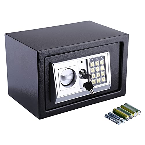 Robusto armadio di sicurezza: La cassetta di sicurezza in acciaio con codice digitale da 8,5 litri è realizzata con una solida struttura a parete in acciaio rinforzato di 2 mm di spessore. La porta d'ingresso di 4 mm di spessore può fornire una maggiore sicurezza. I bulloni di blocco della porta in acciaio di sicurezza e il rivestimento in polvere anticorrosione e antivegetativa possono garantire la sicurezza della cassetta di sicurezza