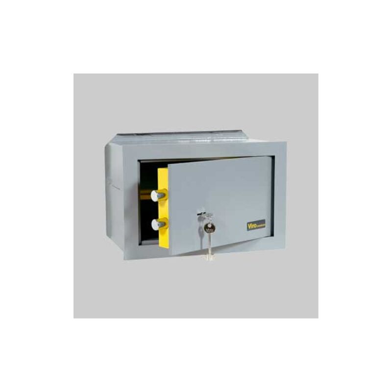 Versione orizzontale da incasso. Cassa in acciaio di spessore 2 mm. Cornice in acciaio di spessore 10 mm. Sportello in acciaio di spessore 10 mm. Serratura in acciaio a doppia mappa a 6 gorges ad elevato numero di cifrature possibili, con catenacci orizzontale e verticali (ove presenti) rotanti antitaglio in acciaio nichelato. 2 chiavi in dotazione. Cassaforte con chiave 'casasicura' viro 360x200x240h VIRO Casseforti