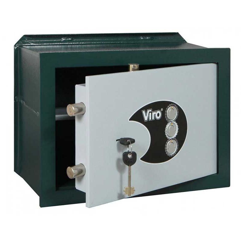 Cassaforte a Muro Con Combinazione e Chiave Viro 1.4344.20 Privacy Cassaforte da incasso con corpo in acciaio di 2 mm, cornice e sportello da 10 mm, lo spazio tra loro è minimo e non consente l'introduzione di strumenti di scasso. Dimensioni: Articolo Dimensioni (mm) Larghezza Altezza Profondità Peso Kg Nr. Catenacci Prezzo 1.4344.20 Esterno 420 300 200 21,5 4 d20 mm 419,90 € Interno 402 282 148 Dati Tecnici: Cassa in acciaio di spessore 2 mm Alette in acciaio su tutti i lati posteriori (ripiegate ad L sui 2 lati orizzontali) della cassa, per aumentare la sicurezza contro lo scasso Cornice e sportello in acciaio di spessore 10 mm Lo spazio fra sportello e cornice è minimo e non consente l'introduzione di strumenti di scasso Cerniere rinforzate in acciaio di lato 20 mm fissate con perni in acciaio diametro 8 mm Quattro Catenacci in totale, due orizzontali e due verticali, rotanti antitaglio tutti in acciaio nichelato. Fornita con mensola portaoggetti rimovibile in acciaio verniciato