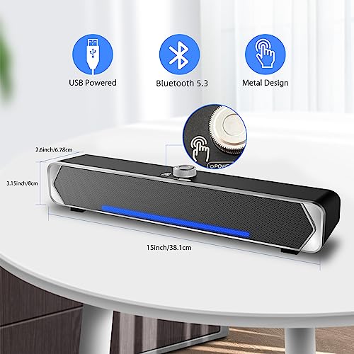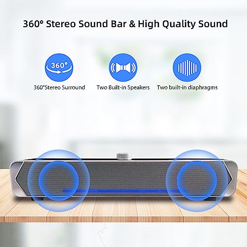 ♬【Design unico】Altoparlante per PC da tavolo con design elegante della barra, il cavo USB singolo è perfetto da posizionare sotto il monitor per evitare la confusione dei cavi, risparmiando così spazio prezioso sulla scriva