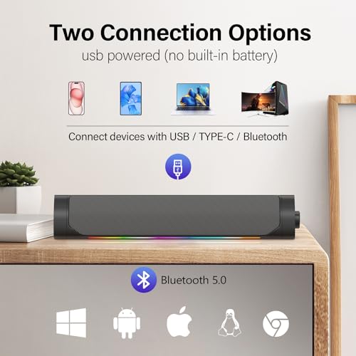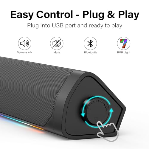 Casse per PC, Soundbar PC avec RGB, Altoparlante Bluetooth per Computer con Audio Stereo Surround Music Box per Desktop, Laptop, Telefono, Tablet - Plug and Play (Grigio)