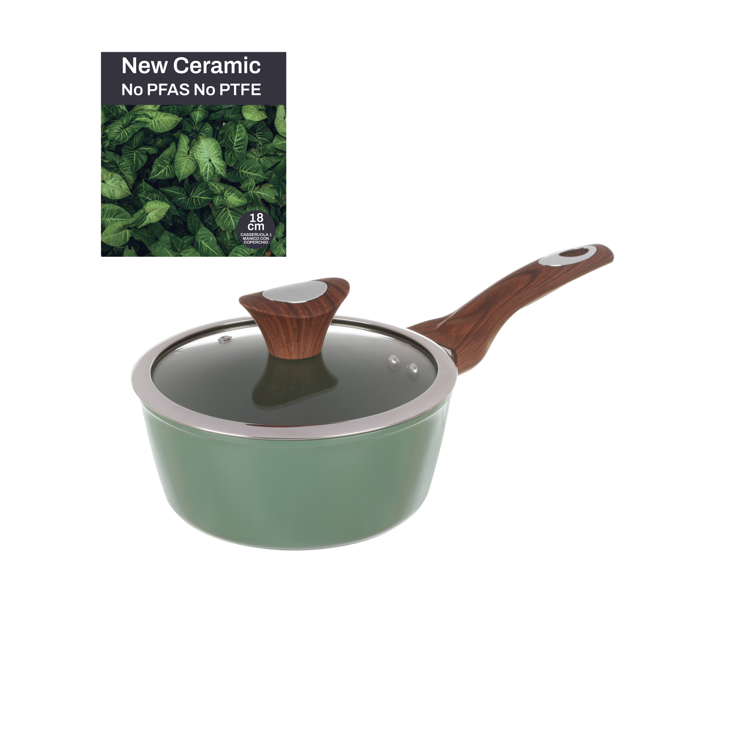 Casseruola un manico 18 cm con coperchio verde New;
