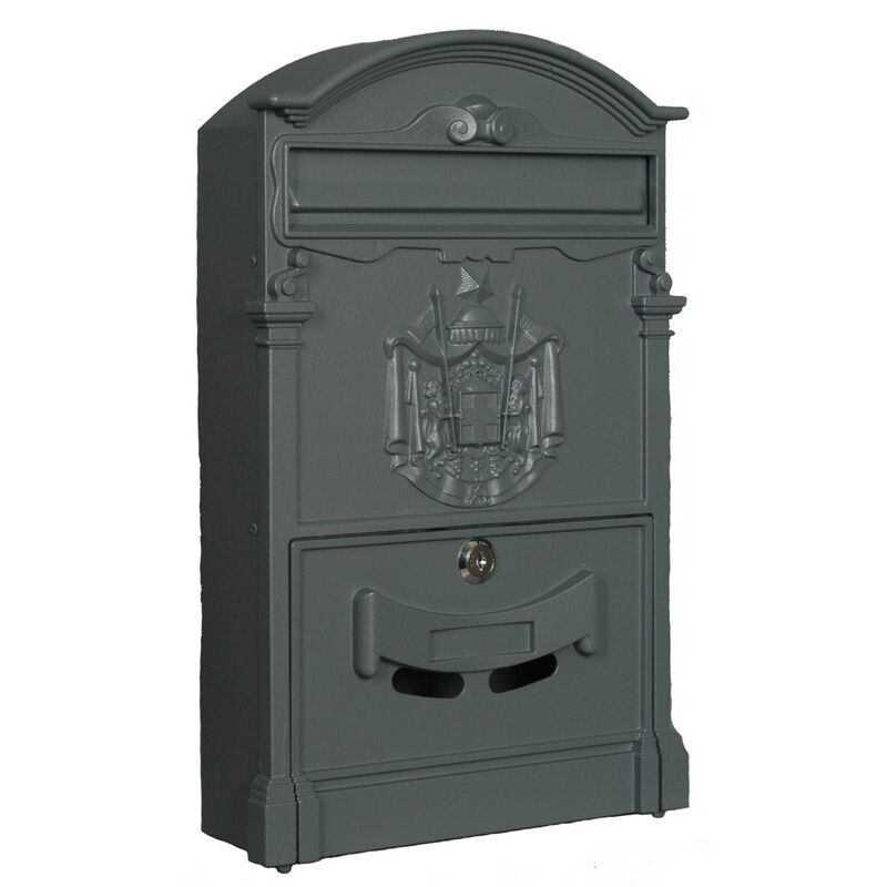 Mod. REGIA POSTA in alluminio pressofuso verniciato. Serratura a cilindro. Con 2 chiavi. Dimensioni mm 260x90x410h Finitura grigio ghisa
