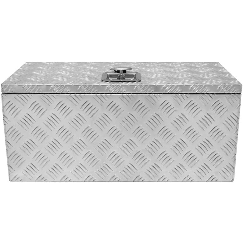 Migliora il tuo deposito di attrezzi con la nostra robusta cassetta degli attrezzi in alluminio, progettata per offrire eccezionale funzionalità e sicurezza per professionisti e appassionati del fai-da-te. Con un design compatto ma una generosa capacità di stoccaggio di 70 litri, questa versatile cassetta degli attrezzi è adatta a una vasta gamma di applicazioni. Ideale per essere fissata su rimorchi o sul retro di pickup, questa cassetta degli attrezzi è perfetta per conservare in sicurezza attrezzi, cinghie e lucchetti di accoppiamento, garantendoti tranquillità ovunque tu vada. Costruita in lamiera mandorlata di alluminio, questa cassetta degli attrezzi è progettata per la massima resistenza e durabilità. Il suo design completamente impermeabile, completo di guarnizione in gomma intorno al coperchio e all'apertura, impedisce l'ingresso di acqua e sporco, assicurando che tutti gli oggetti all'interno rimangano puliti e asciutti. La robusta costruzione saldata ne aumenta