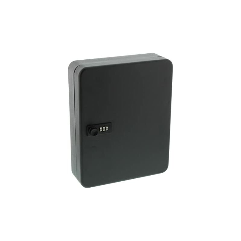 STOCCAGGIO ORGANIZZATO: I 36 ganci possono ricevere mazzi di chiavi o chiavi singole. Quindi la tua auto, casa o altre chiavi sono sempre a portata di mano. I ganci possono essere numerati per renderlo ancora più facile da usare. CODE LOCK: Puoi scegliere un codice individuale a 3 cifre per il blocco del codice per proteggere la tua cassetta delle chiavi da accessi non autorizzati. DESIGN NEUTRO: La cassetta portachiavi in lamiera di acciaio nero opaco è molto versatile e adatta sia per uso professionale che privato. La cerniera della porta è a destra e si apre di circa 90°. FORNITURA E DIMENSIONI: 1 Cassetta portachiavi con, Serratura a codice, Materiale di fissaggio, Materiale: Lamiera d'acciaio, Dimensioni: (AxLxP): 300 x 240 x 75 mm, Colore: Nero opaco