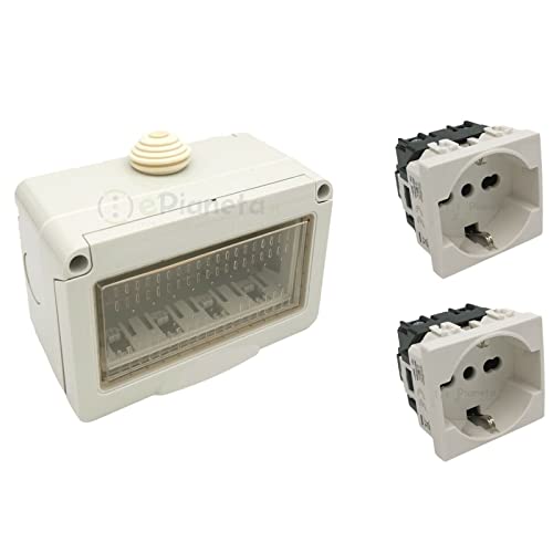 Cassetta esterna a tenuta stagna inclusa di shuko o presa bipasso scatola da muro presa corrente elettrica IP55 (Box + 2 Shuko)
