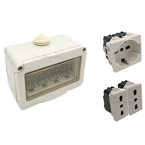 Cassetta esterna a tenuta stagna inclusa di shuko o presa bipasso scatola da muro presa corrente elettrica IP55 (Box + 1 Shuko + 2 Prese)