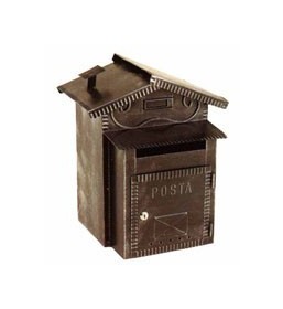 Cassetta postale per esterni modello casetta Ferro battuto colore nero Tetto parapioggia fisso - Portapane Lato frontale per imbucare e ritirare Dimensioni cm 27x27 h 41