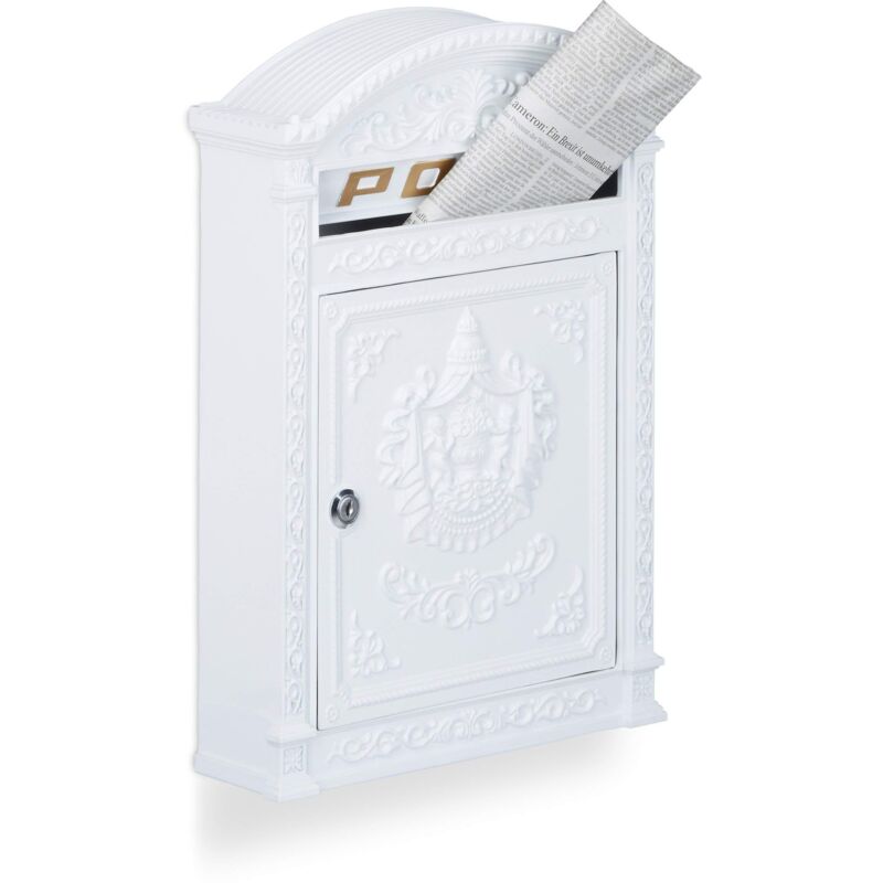 Descrizione Questa cassetta postale per esterni, in stile antico, è una vera e propria attrazione per la tua casa, grazie al tetto arrotondato e alle decorazioni eleganti e discrete. La buca per la corrispondenza è in formato A4. L'alluminio robusto è resistente alle intemperie e molto leggero. Il montaggio a parete viene effettuata in modo facile e veloce. Cassetta della posta in dettaglio - Dimensioni H x L x P: circa 44,5 x 31 x 9,5 cm - Peso: ca. 3,6 kg - Dimensioni fessura cassetta H x L: 4 x 24 cm - Dimensioni vano ritiro H x L: circa 24 x 25,5 cm - Materiale: alluminio pressofuso Casella postale in stile antico-vintage - Modello ispirato allo stile inglese - Tetto arrotondato - Disponibile in vari colori - Grande spazio per corrispondenza e buste in formato A4 - Dotata di serratura con chiave intercambiabile - Basta semplicemente appenderla al muro Contenuto della confezione - 1x casella postale a muro - Chiave e chiave di scorta - Oggetti decorativi e materiale di