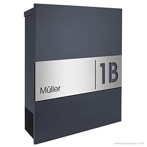 Cassetta delle lettere di design antracite con scomparto per giornali (RAL 7016) MOCAVI Box 111 cassetta postale con numero civico e nome in acciaio inox V4A inciso moderna cassetta delle lettere