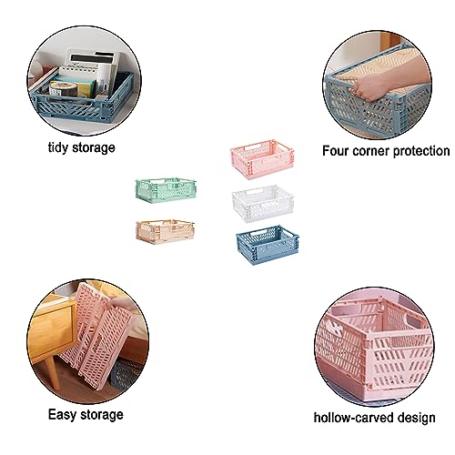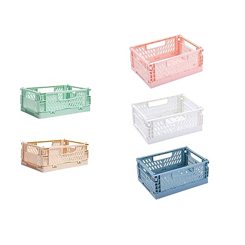 5 PCS Cassetta di Plastica Pieghevole Cestini Pieghevoli in Plastica Cassette Plastica Pieghevoli Sovrapponibili Mini Cestini in Plastica Pieghevole per Camera da Letto,Articoli da Toeletta,Cosmetici