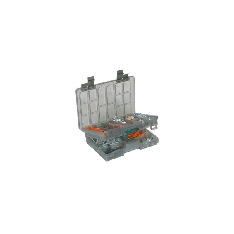 Raccoglitore Planbox della Plano Organizer Line, ideale come contenitore professionale per articoli di ferramenta, utensileria, elettrici, elettronici e per fai da te. Raccoglitore PLANO Organizer 4600 realizzato in polipropilene trasparente, sistema di doppia apertura con divisori componibili. Utile per tenere in ordine utensili e dispositivi di piccole dimensioni. Caratteristiche: Portaminuterie trasparente;
