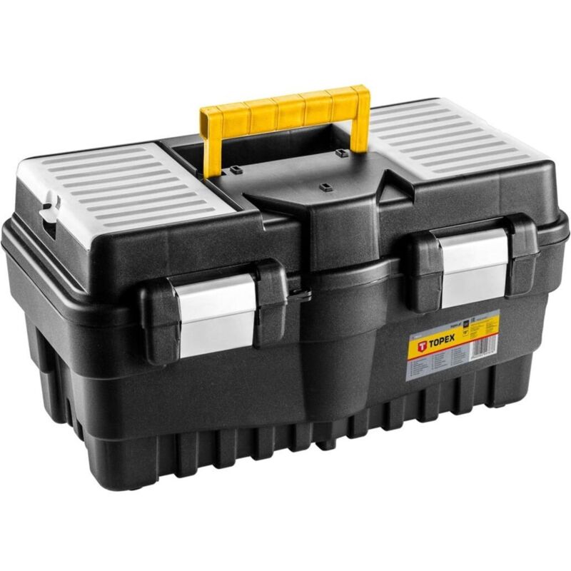 Dalla linea dedicata ai prodotti porta utensili a marchio Topex, la cassetta porta attrezzi da 19 è pratica e solida, realizzata in plastica resistente con doppia chiusura meccanica frontale in alluminio. La cassetta ha due livelli, uno superiore ove è possibile stoccare viti e tasselli, che puòessere staccato e trasportato mediante la maniglia superiore, mentre il corpo inferiore può essere utilizzato per riporvi utensili manuali o elettroutensili, la connessione dei due livelli, avviene mediante solidi ganci laterali. L'insieme di queste caratteristiche, rende questa cassetta porta attrezzi utilissima, per chi pratica fai da te in maniera professionale, o per chi è alla ricerca di un valido porta attrezzi da lavoro, badando alla sostanza e all'efficienza.