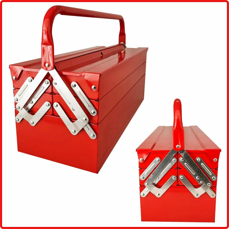 Cassetta porta utensili per attrezzi professionale e organizer in acciaio inox Descrizione Cassetta Portautensili 5 scomparti metallo 420mm disponibile in due modelli da 5 ripiani, interamente in acciaio inox resistente. Estensibile a chiusura fisarmonica, con vassoi. le dimensioni nel primo modello sono 40x20x21 CM. Invece il secondo modello sono, 52x20x20 CM. Porta Attrezzi, è il posto perfetto in cui riporre in modo ordinato i tuoi utensili, come cacciaviti chiavi inglesi, martello, inserti per il trapano e tanto altro. Design a 5 Vassoi I connettori in metallo collegano i vassoi ripiegabili, che occupano poco spazio quando chiudi la cassetta. Sono presenti due vassoi su ogni lato e un grande vassoio centrale. Materiali di Qualità La cassetta degli attrezzi è realizzata in lamiera di acciaio al carbonio (SPCC), che ha un'elevata durezza e alta capacità di carico. Verniciata a polvere in tutte le sue parti, per evitare graffi e ruggine. Facile da Trasportare Maniglia in metallo, per