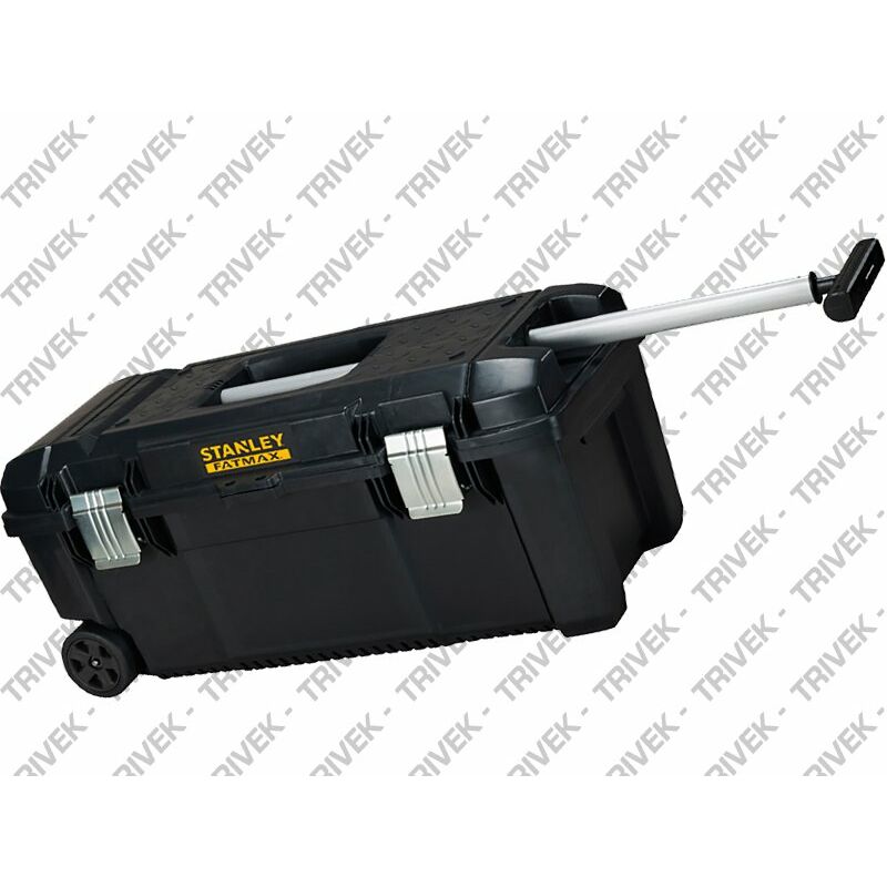 Cassetta in polipropilene, con vaschetta estraibile. L'oggetto è completamente impermeabile (IP54). Vi sono alcuni speciali incavi laterali per facilitare il sollevamento. La maniglia è telescopica. Le cerniere di chiusura sono in metallo. La capacità di carico è di 35 kg. La scanalatura a V nel coperchio è pensata per il taglio di assi.