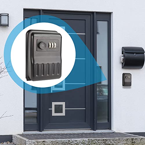 Cassetta Portachiavi da muro con codice a 3 cifre - Mini cassaforte per chiavi - Montaggio a muro, uso esterno/interno - Impermeabile e antiruggine - Nero