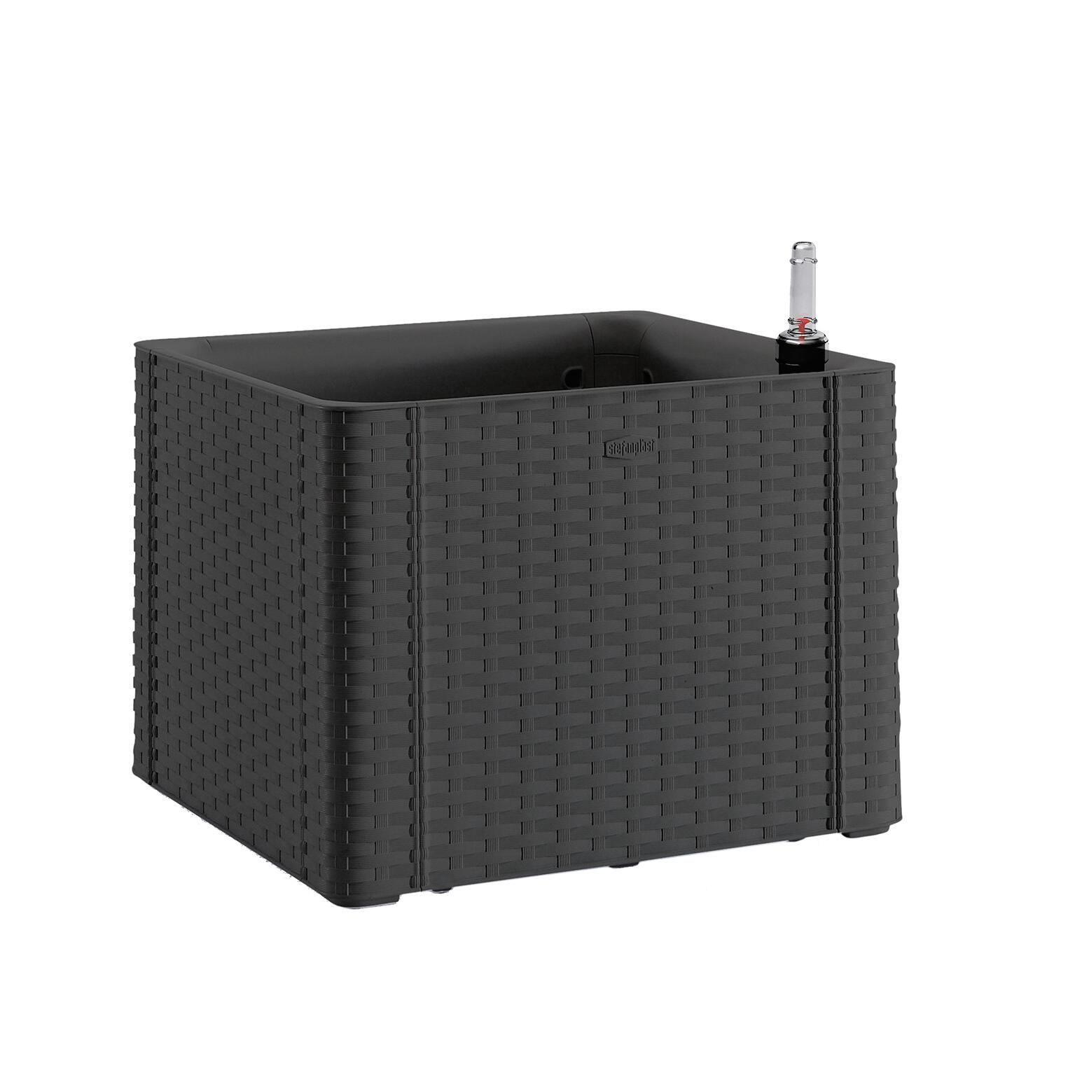 Fioriera linea natural deluxe quadrata in plastica, colore antracite e dimensioni 43 x 43 x h 33 cm. Ideale per organizzare e arredare gli spazi con il verde, creando angoli e quinte fiorite. Fioriera caratterizzata da un raffinato intreccio ispirato agli arredi naturali. Prodotta in Italia, il materiale con cui è realizzata è al 100% riciclabile. Dotata riserva d'acqua e indicatore di livello per una corretta irrigazione di fiori e piante