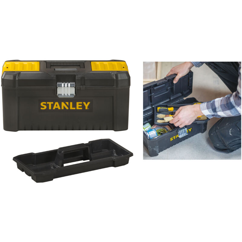 Cassetta portautensili realizzata in polipropilene, una plastica molto dura e resistente agli urti, al tempo e alle intemperie. Il coperchio presenta due tasche organizer per la piccola minuteria. Vaschetta estraibile e cerniere di chiusura in metallo. La cassetta portautensili Essential è disponibili in diversi formati, scoprili tutti! Contenuto della confezione: 1x Cassetta Portautensili Essential STANLEY 40,6x20,5x19,5 cm