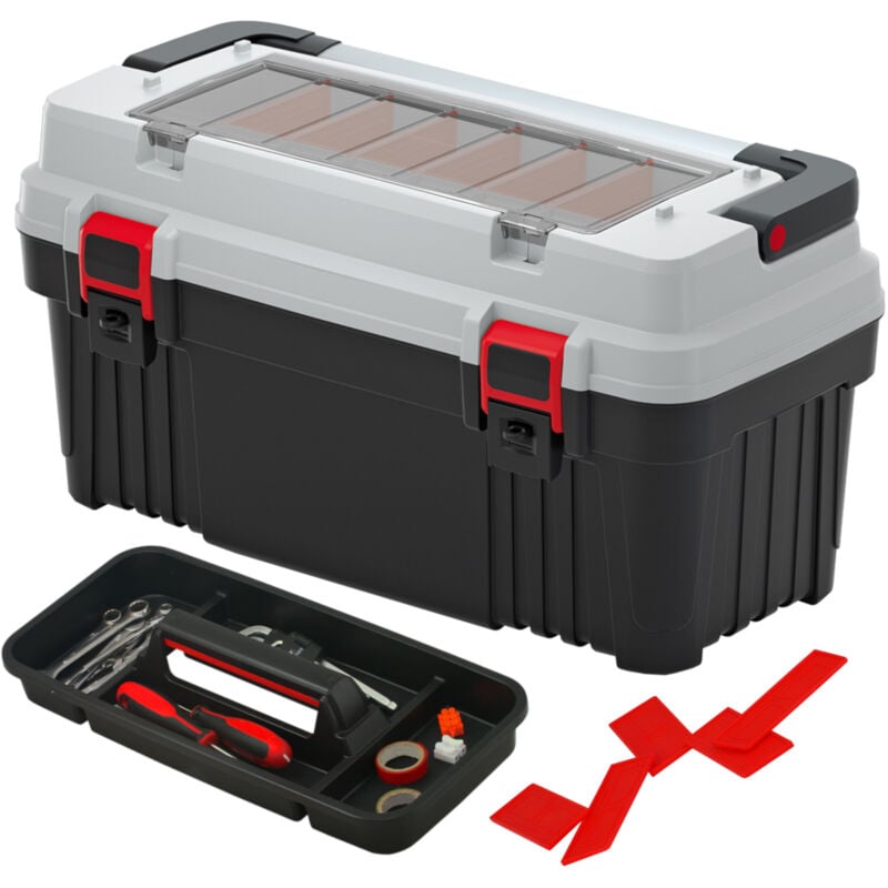 Mm.470x256x238h. carico max Kg.13 art.KOPA5025S struttura polipropilene cerniere ABS maniglia alluminio coperchio 1 vaschetta portaminuteria con scomparti amovibili 1 scomparto vassoio estraibile 4 vaschette chiusure portalucchetto Pezzi per confezione primaria: 1,0 Larghezza 45,8 Lunghezza 17,7 Altezza 23,3 Peso 1,615