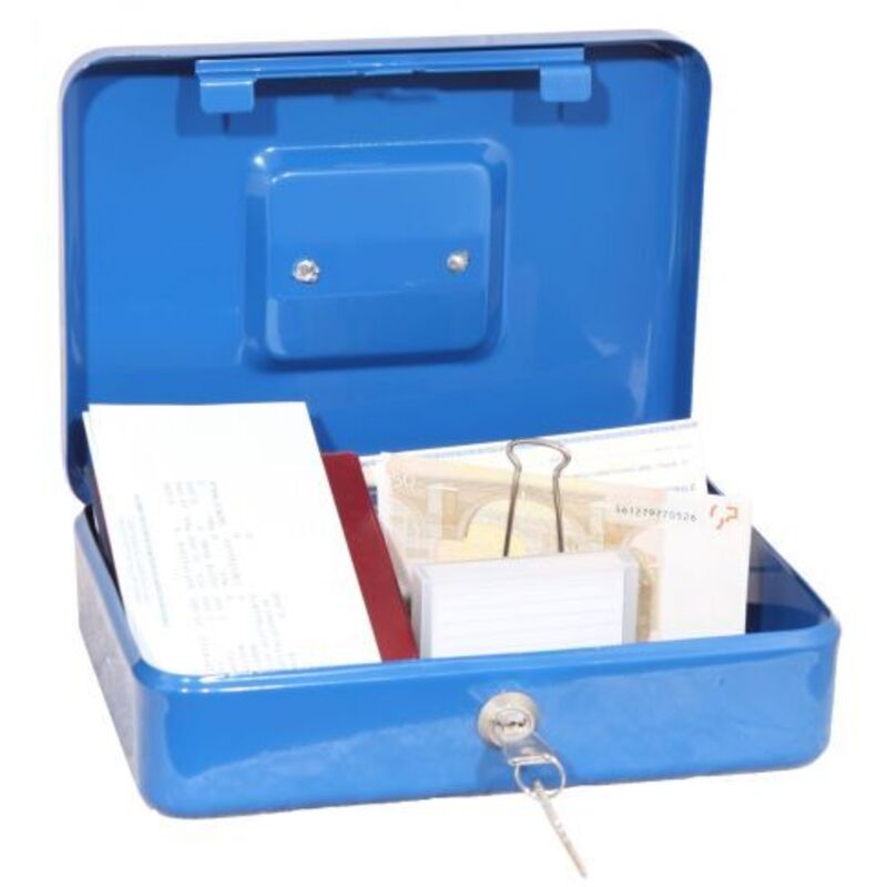 In acciaio. Con chiusura a scatto e 1 mandata. Serratura a cilindro. Con 2 chiavi. Senza scomparto. Mis. 4/B Dimensioni cm 30x24x7