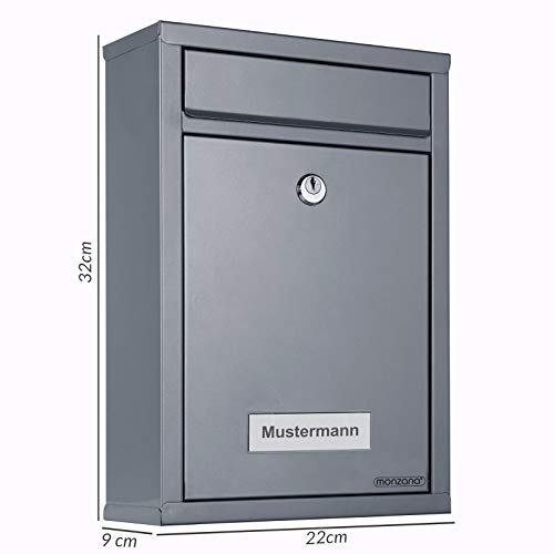 Cassetta postale argento a parete | Casetta delle lettere | incl. 2 Chiavi | targhetta per il nome| chiudere a chiave | colore a scelta | Posta | acciaio
