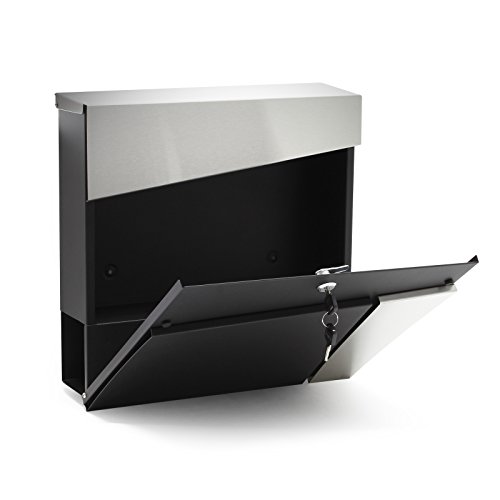 Cassetta postale design V24 vano portagiornale montaggio parete nero acciaio inox
