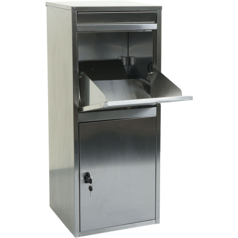 Cassetta postale per lettere e pacchi parcel box modello HHG-330 acciaio verniciato a polvere 102x41x38cm colore GRIGIO Scopri la soluzione definitiva per la ricezione dei pacchi! Questa versatile cassetta unisce sicurezza, qualità e funzionalità per ricevere i pacchi in modo sicuro e pratico. La nostra cassetta per pacchi è stata dotata di un sistema di deposito sicuro che protegge i vostri pacchi da accessi indesiderati, Il sistema prevede l'apertura dello sportello per inserire il pacco, non appena lo sportello viene chiuso, il pacco cade nella parte inferiore della cassetta, dove il pacco non può essere preso senza prima dover aprire lo sportello con serratura. Nella parte inferiore della cassetta è presente un tappetino che ammortizza la caduta del pacco e lo protegge da eventuali danni. La cassetta è ideale anche per l'uso commerciale, ed è perfetta per mantenere le tue consegne al sicuro. Questa cassetta postale è adatta alla ricezione di lettere e di pacchi di piccole e medie
