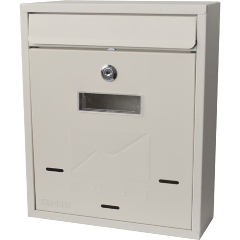 CASSETTA POSTALE MAURER "DOMUS" BIANCA L. x P. x H.: 26x9x31 cm. In acciaio verniciato epossidico dotata di tetto parapioggia con introduzione dall'alto - Chiusura a cilindro con due chiavi duplicabili in dotazione - Adatta per uso esterno