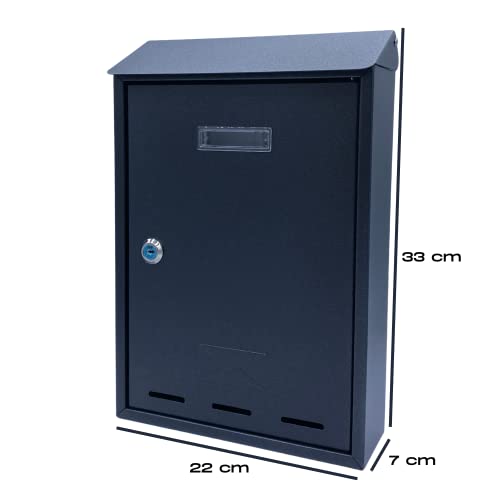 Cassetta Postale da Parete, per Esterno, in Acciaio Galvanizzato con Finestrella, Chiusura a Chiave e Targhetta Nome, Buca - MADE IN ITALY (Antracite)